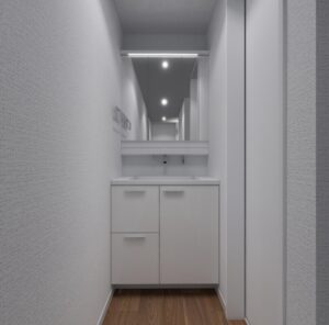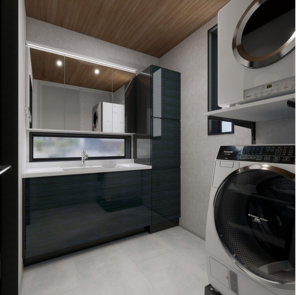 ◆洗面室:東京ガス衣類乾燥機【乾太くん9kg】・洗面化粧台1200+450(収納)